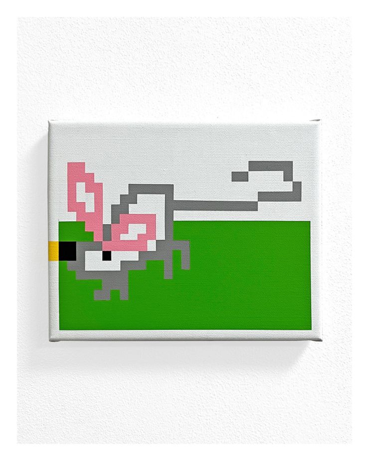Jiří Mayer (*1990 in Trebic, CZ, lebt und arbeitet in Brno, CZ) ist bekannt für seine typische pixelige Bildsprache und sein künstlerisches Hauptthema Tiere. Für die Umsetzung verwendet er zuerst Windows Paint (eine ‚moderne‘ Technologie, die aber bereits ein Relikt der Vergangenheit geworden ist), indem er Skizzen vergrößert und die entstandenen Formen in Acryl auf die Leinwand überträgt. Klicken Sie hier für weitere Informationen.