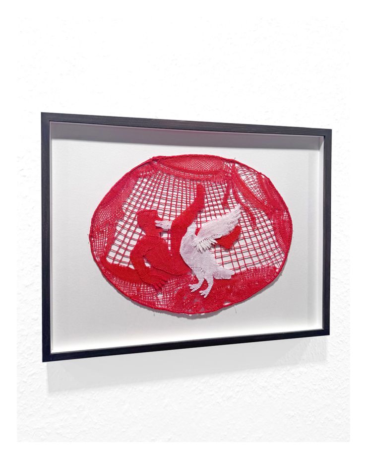 In seinen Werken beschwört Richard Helbin (*1980 in Polen, lebt und arbeitet in Düsseldorf) längst vergangene Werte herauf, die er mit Sehnsuchtsbildern homoerotischer Natur verwebt. Von Wandteppichen über Bronzegüsse von Häkelplastiken bis hin zu akribisch geklöppelten Miniaturen verwendet der Künstler allesamt Techniken, die dereinst ganze Städte und Regionen reich gemacht, heute als Handwerk allerdings keinerlei ökonomische Bedeutung mehr haben. Klicken Sie hier für weitere Informationen.