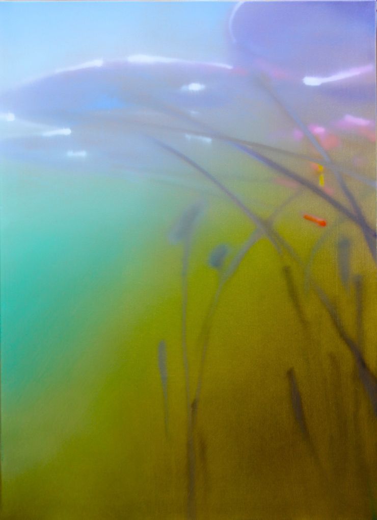 Julia Jansens Malerei bewegt sich zwischen den Welten des Lichts und der Tiefe. Sie ist eine Mittlerin, die zwischen der Welt der Luft und der Welt des Wassers fungiert, und zeigt, wie Luft, Leben und Lilien durch die Wasseroberfläche miteinander agieren und kommunizieren, sich berühren, brechen und verändern.