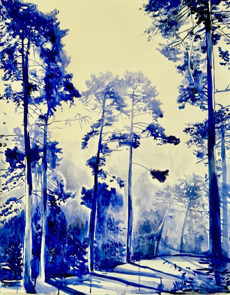 Malgosia Jankowska: Morgenblau, 2026, Tusche auf Papier, 100 x 70 cm |